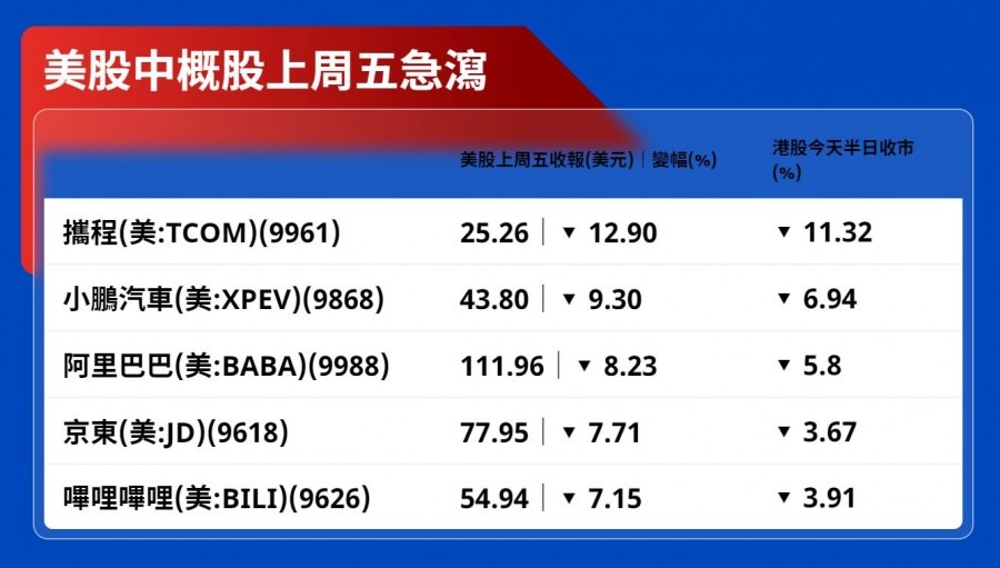 美國上市中概股上周五(3日)急跌。