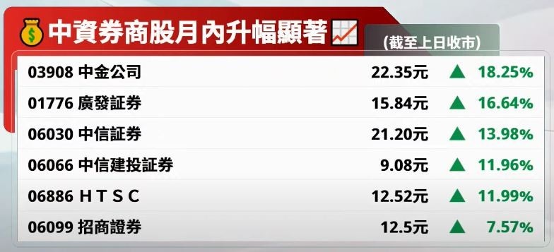截至上日,普遍中資券商股月內漲逾一成。(《開市Good Morning》截圖)