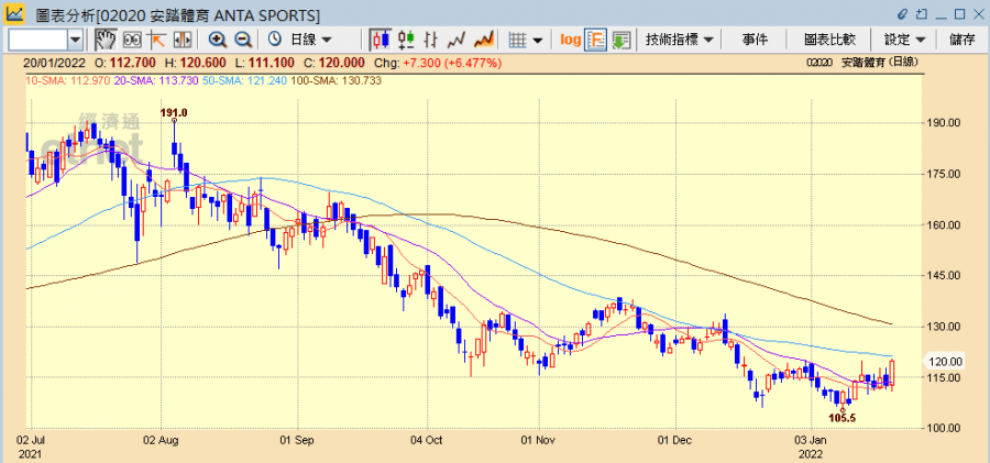 大和則指,儘管變種病毒Omicron疫情上季末在中國爆發,對線下銷售渠道帶來負面影響,但管理層強調,年初至今FILA及ANTA品牌銷售額均錄雙位數增長,相信受惠於今年較早的農曆新年,而ANTA品牌提升及改革也有正面幫助。管理層計劃在今年上半年北京冬奧期間加大營銷投入,同時投資在新興產品線和線上平台。高基數壓力可能在今年持續出現,重申安踏「買入」評級,但將目標價由175元調降10.3%至157元,以反映整個板塊的重估及品牌投資增加。