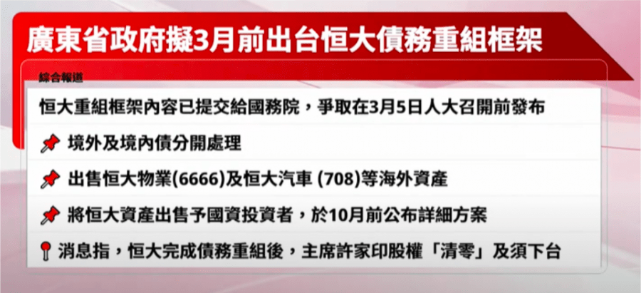 外媒《REDD》報道的債務重組框架,計劃擬將恆大境外債務和資產與境內的分離。