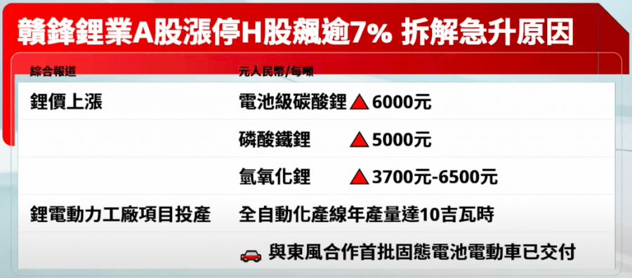 受惠於鋰價上漲及新工廠投產,贛鋒股價連日造好。