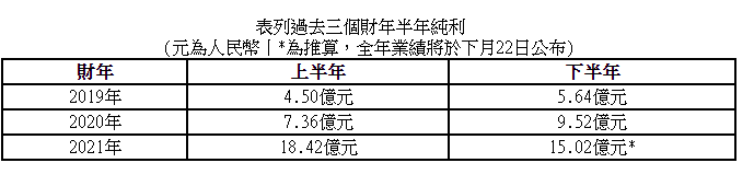 事實上,以2020財年純利16.89億元人民幣計算,即去年多賺逾33億元人民幣。扣減去年上半年純利18.42億元人民幣,下半年純利約15.02億元人民幣,較上半年倒退約18%,惟較2020年下半年、2019年下半年分別增加逾57%及1.66倍。要留意,觀乎過去三個財年,2019財年及2020財年下半年的純利均比上半年的多,但這趨勢去年則有較大機會斷纜,或許是市場不太收貨的原因。