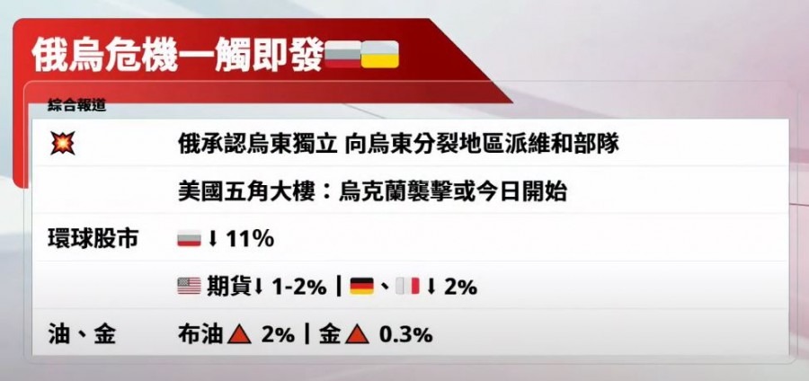 俄軍進入烏東地區,大市跌超過700點