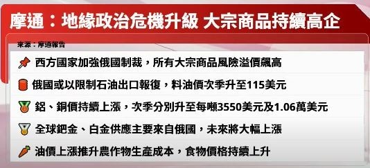 摩通預料,隨著西方國家加大制裁俄羅斯,大宗商品的高風險溢價將持續一段長時間。(《開市Good Morning》截圖)