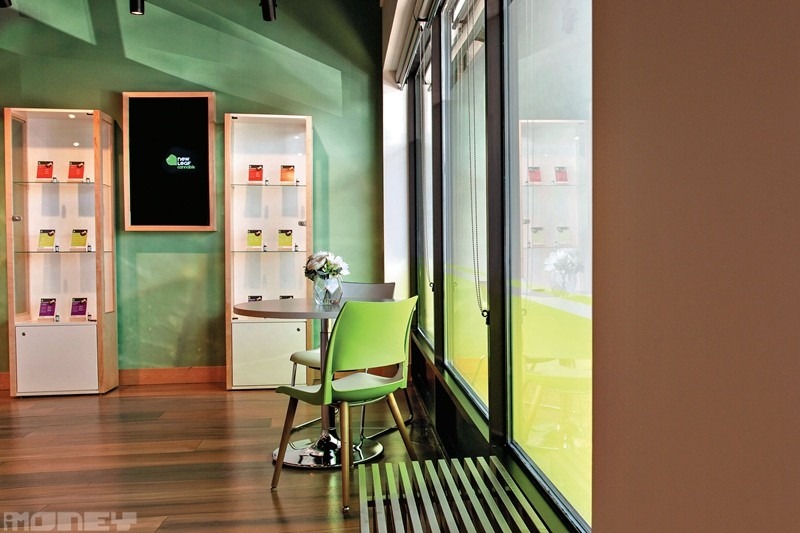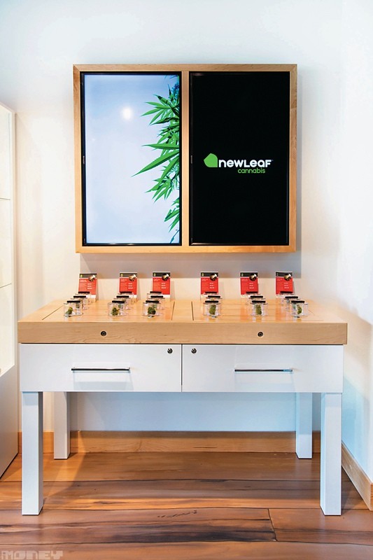 在阿伯達省擁有最多分店的大麻店NewLeaf,統一裝修有如電話專門店。