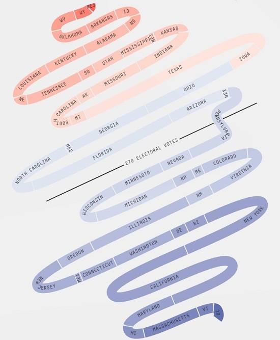 理論上,只要贏得上述票倉,即使在個別選舉人票僅得三五張的州份(如阿拉斯加、夏威夷、蒙大拿、新墨西哥等),哪怕沒有一個選民支持,也足以贏得白宮寶座。