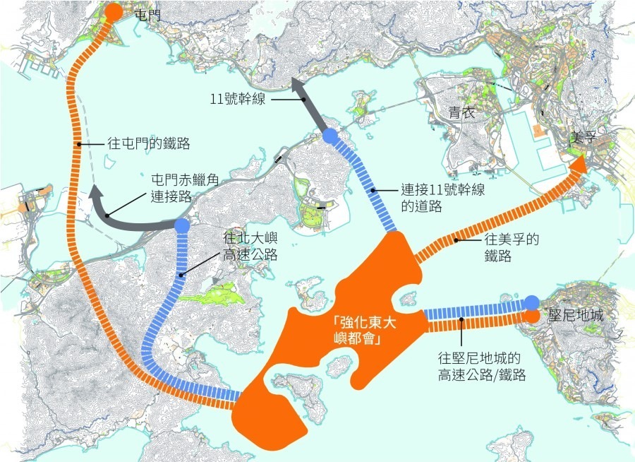 除了成本問題,黃元山還覺得,執意在新界開發新市鎮,必定要面對交通飽和的困局。「西鐵已經飽和,馬料水那邊反對填海,其中一個原因就是南北線也是已飽和了。」他籲大家想像一下,「在新界西北也好、東北也好」,興建一個2200公頃的新市鎮,就必須興建多一條鐵路和公路,穿過郊野公園、一座座山匯合至市中心。」