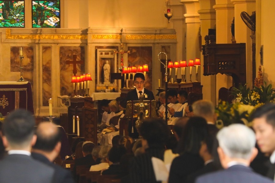 安息禮儀式約於早上11時05分開始,堂內唱起聖詩Amazing Grace(奇異恩典)。