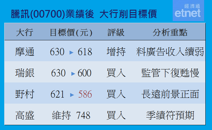 大行點睇你要知 紛削騰訊目標價 一表盡掌握