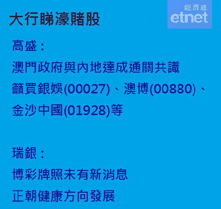 高盛、瑞銀點睇濠賭股 一Click就知道