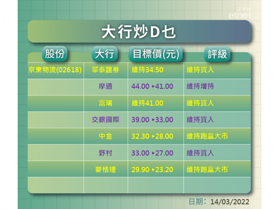 【大行炒D乜】五行齊削京東物流目標價 麥格理最狠