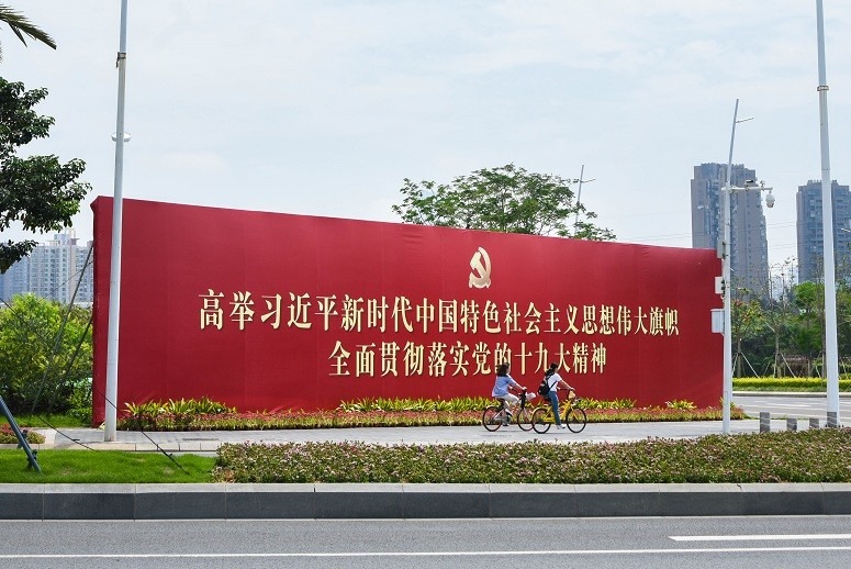 前海自貿區的入口處豎立著巨大的標語牌。 (Kenji攝)