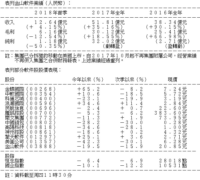 另外,金山軟件辦公軟件及服務業務表現同樣突出,該分部今年首季收益為2.12億元人民幣,較去年同期增長66%,主要來自於WPS網絡廣告推廣服務,及WPS Office個人版增值服務收入的快速增長,預期能成為支撐業務的新引擎。