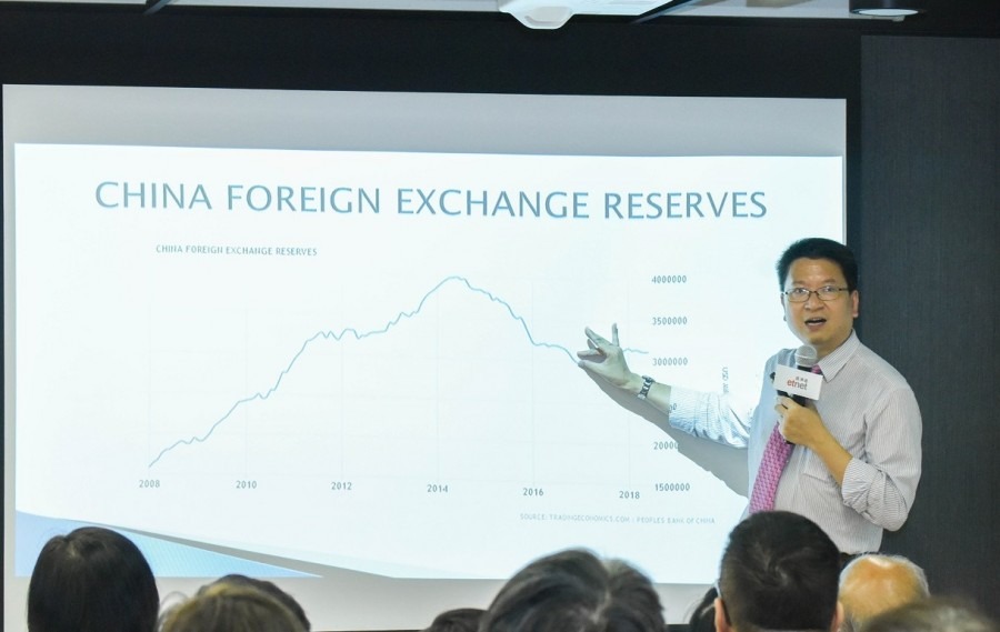 此外,莊太量續指,中國會採取甚麼方法應對貿易戰,主要考慮對自身的益處及相關應對措施能否令美國收手,而他認為中國出售美債或對蘋果公司產品來華設置障礙等其實對中國益處不大,唯一有較有利是將人民幣稍為貶值,但他預計若觸碰到三萬億美元外匯儲備心理關口,人民幣貶值便會停止,並認為人民幣貶值會否觸發其他貨幣貶值潮的機會不大。
