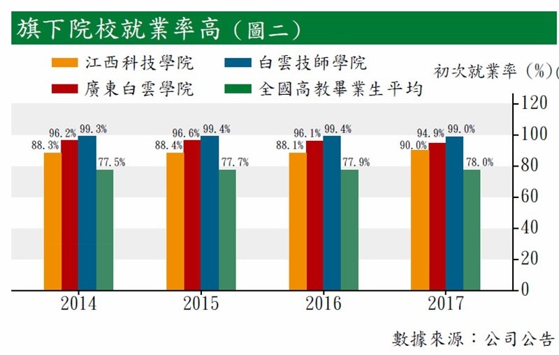 集團目前營運的三所學校規模甚大,且定位清晰。江西科技學院立足江西,以應用學科為主,廣東白雲學院及白雲技師學院則主打珠三角,前者以本科教育為主,後者則提供職業教育及短期教育課程。