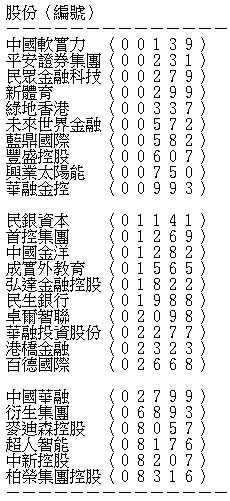 Webb最新的港股名單,當中包括26隻股份,牽涉中國華融及民行(01988)(滬:600016)之間的網絡。