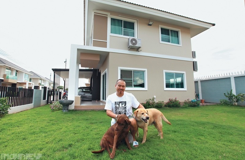 記者甫抵達Derek在清邁的住宅,他的3隻愛犬即時由私人花園跑到門口熱情歡迎。這間在大型屋苑內,佔地3,200平方呎,室內面積約1,500平方呎,是他去年以約85萬元買入的一手新屋,而這個價錢在香港分分鐘連一個車位也未必買到。