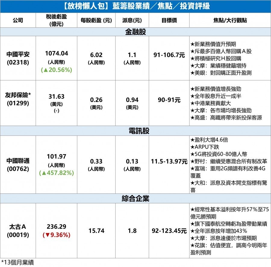 【放榜懶人包】本周重點藍籌股業績/焦點/投資評級 一表盡掌握