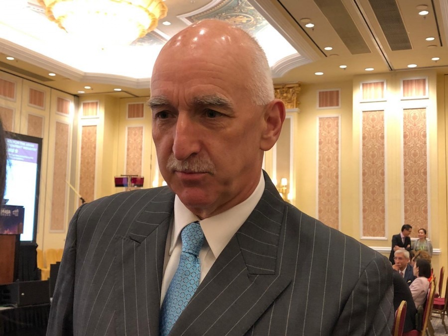 美高梅中國(02282)首席執行官簡博賢不擔心中美貿易戰對公司賭牌帶來影響(記者李梓瑩攝)