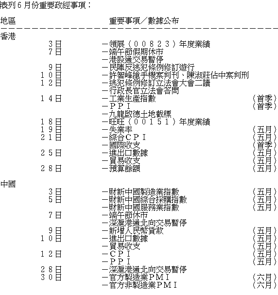 黃偉豪則認為,港股5月已插水式下瀉近三千點,市場投資氣氛淡薄,若「六絕月」真的降臨,投資者應以「現金為王」,ETF及公用防守股已達不到避險作用,加上公用股的現價已經甚高,現階段實在不宜沾手。