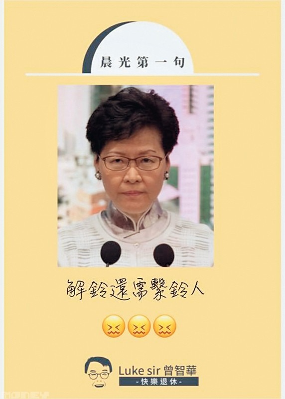 別小看今年剛滿65歲的Luke Sir,他每天親自上載內容到Fb專頁,沒有聘請「小編」代勞,尤其是每天早上不少人追看的「晨光第一句」,更是夫妻檔製作。他最初還擔心每天也要構思「晨光第一句」會沒有題材,不過新聞日日有,每天都有不同事情發生,加上他保持一顆年輕的好奇心,要找每日熱話難不到這位六旬KOL。現時他每朝閱讀4份報章,大約8時許已構思好「晨光第一句」、找配圖,然後就交給太太製圖,他笑言︰「所以唔得罪得(太太),得罪了朝早唔整(圖)!」對於樂齡KOL這個新角色,Luke Sir當初也意想不到,既然上天有這安排,他就做好這角色,努力向港人宣揚快樂退休的理念。