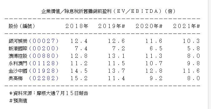雖然美高梅中國並不是濠賭藍籌,但在基本面上並不亞於其他同行。摩根大通在最新一份報告中提到,即使其澳門美獅美高梅酒店完全停止營運,美高梅中國的企業價值/除息稅折舊攤銷前盈利(EV/EBITDA)依然會維持在11倍水平。分析又相信,美獅美高梅於今年第二季開始加快達至收支平衡,並建立穩定客源,故預計美高梅在股價落後的情況下可以反彈,亦為該行首選,予以「增持」投資評級,目標價升至17.5元。
