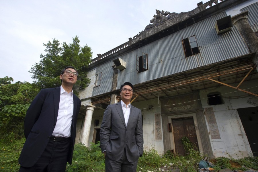恒地(00012)主席李家誠(右)及恒地執董黃浩明視察錦田錦上路江夏圍地皮(恒地圖片)