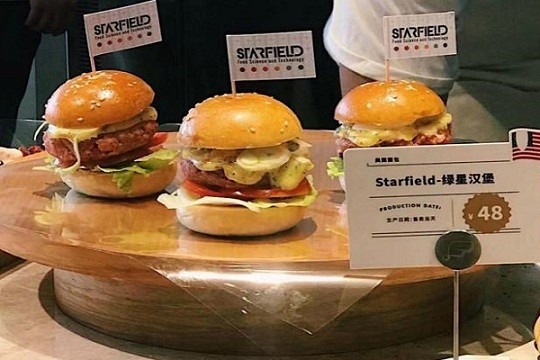 此外,還有總部位於深圳的老字號植物肉企業「齊善」,旗下產品包括素東坡肉、素雞、素魚、素對蝦等。人造肉風興起,就連網紅奶茶「奈雪」本月在深圳海岸城開業的「夢工廠」,售賣來自於深圳人造肉製造商Starfield的人造肉系列產品,「未來漢堡」和「綠星漢堡」每款盛惠48元人民幣。