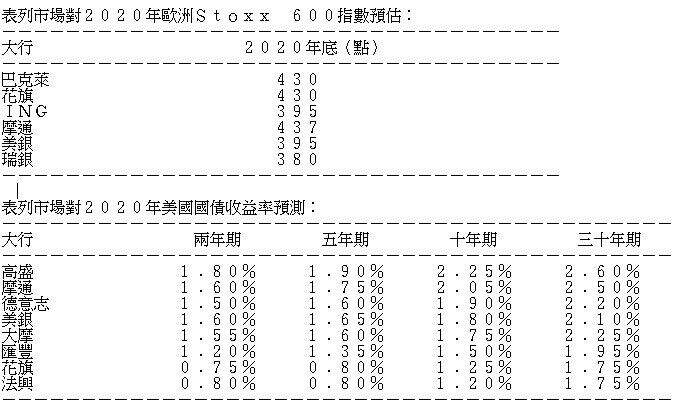 表列外地股指表現及明年預測、美債息預期