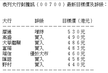 高盛則估計,去年騰訊Non-GAAP盈利為940.86億元,按年升21.45%。集團正計劃將兩款熱門電腦遊戲手遊化,分別是《地下城與勇士》及《英雄聯盟》,兩款遊戲在過去三年令玩家合共消費逾87億美元,料手遊版推出可吸引大部分舊玩家,全球註冊用戶可達10億人。不過,高盛指,雖然騰訊有潛在的版號推出,有助手遊收入增長,但疫情將會停止業務及線下消費活動,使廣告及支付業務增長疲弱,但仍認為騰訊具有強勁的防禦力。